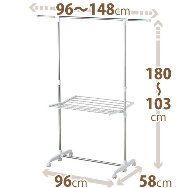 使用時サイズ(約):幅96〜148×奥行58×高さ103〜180cm収納時サイズ(約):幅96×奥行13×高さ103cm 材質:本体/ステンレス巻きスチールパイプ、ステンレスパイプ 樹脂部品/ポリプロピレン、ABS樹脂、ナイロン 金属部品/スチール(メッキ)、ステンレス耐荷重:6kg中国製【代引きについて】こちらの商品は、代引きでの出荷は受け付けておりません。