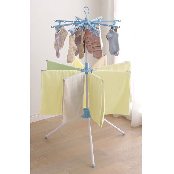 ●商品サイズ(約):幅78×奥行78×高さ126cm ●収納時サイズ(約):幅15×奥行15×高さ156cm ●重量:1.005kg ●耐荷重 全体:5kg ピンチハンガー部:2kg タオルハンガー部:3kg ●干す量の目安:タオル8枚、小物16枚 ●材質:塩化ビニル被覆鋼管、ポリプロピレン★