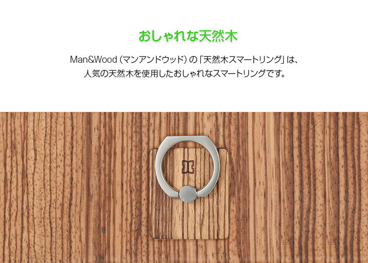 商品紹介 スマホリング Man&Wood 天然木 スマートリング 落下防止 ホルダースタンド 指輪型 バンカーリング お取り寄せ Man&Wood(マンアンドウッド)の「天然木スマートリング」は、人気の天然木を使用したおしゃれなスマートリングです。