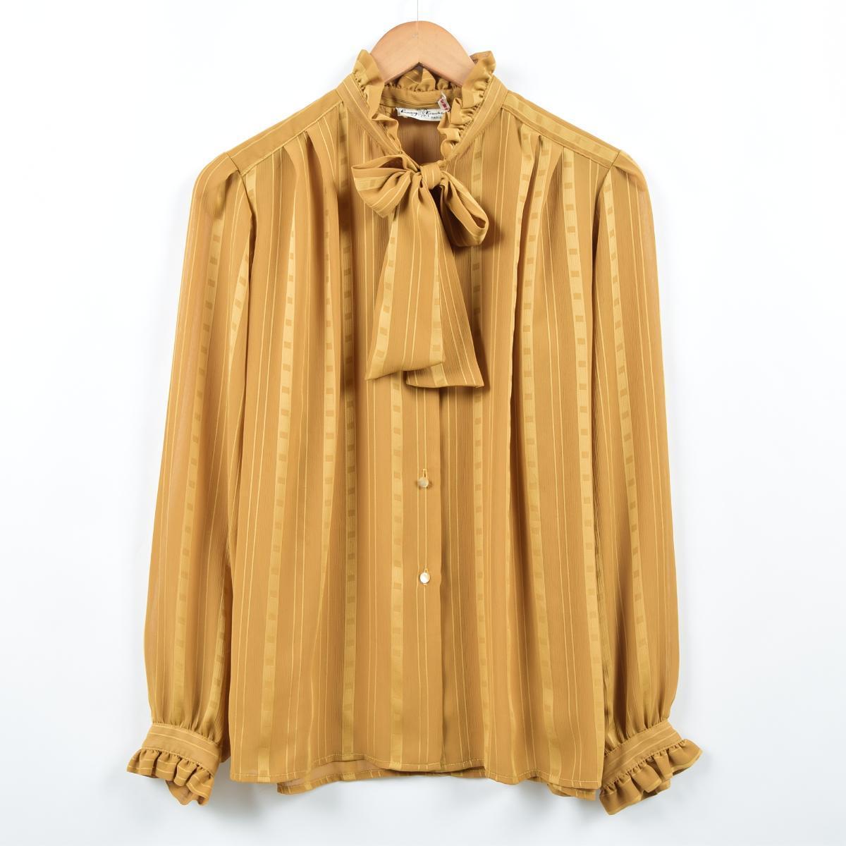 fanny touche マルチストライプ シースルー 長袖 ボウタイ ブラウス フランス製 レディースM /eaa036490 【中古】 【200516】