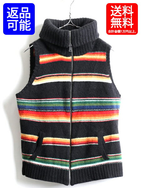 LRL ■ LAUREN ACTIVE ラルフローレン フルジップ ネイティブ ボーダー ウール ニット ベスト ( レディース XL) POLO ポロ 古着 セーター| 【USA古着】 中古 女性 RALPH LAUREN ニットベスト タートルネック ハイネック ブラック 黒 マルチカラー 総柄 ノースリーブ ラム