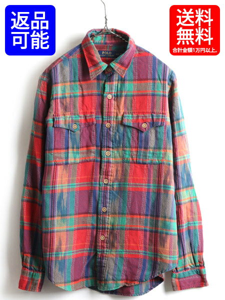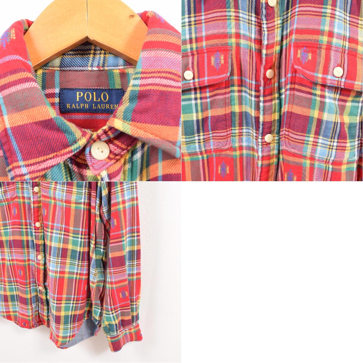 ラルフローレン Ralph Lauren POLO by Ralph Lauren マドラスチェック ネイティブ柄 長袖 ライトネルシャツ メンズS /wbg1106 【中古】 【190809】【PD2001】【CS2003】【【SS2006】】