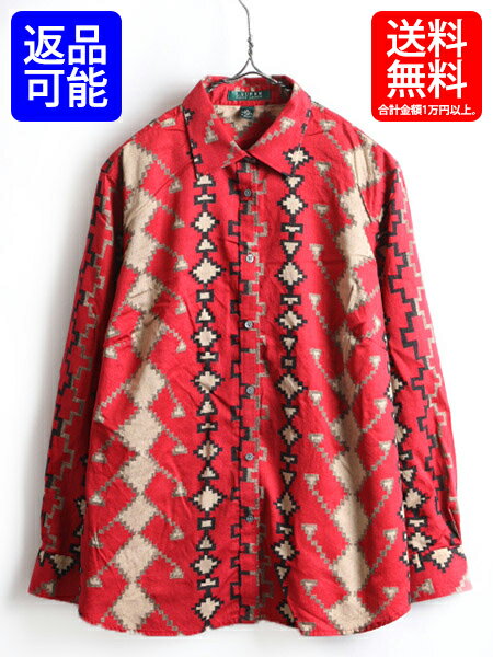 大きいサイズ XL ■ LAUREN ラルフローレン ネイティブ 総柄 長袖 コットン シャツ ( 女性レディース ) 古着 POLO ポロ レッド 長袖シャツ| 【USA古着】中古 コットンシャツ 柄シャツ ネイティブ柄 ローレン トップス マルチカラー 薄手 ブラウス ロングスリーブ RALPH 赤