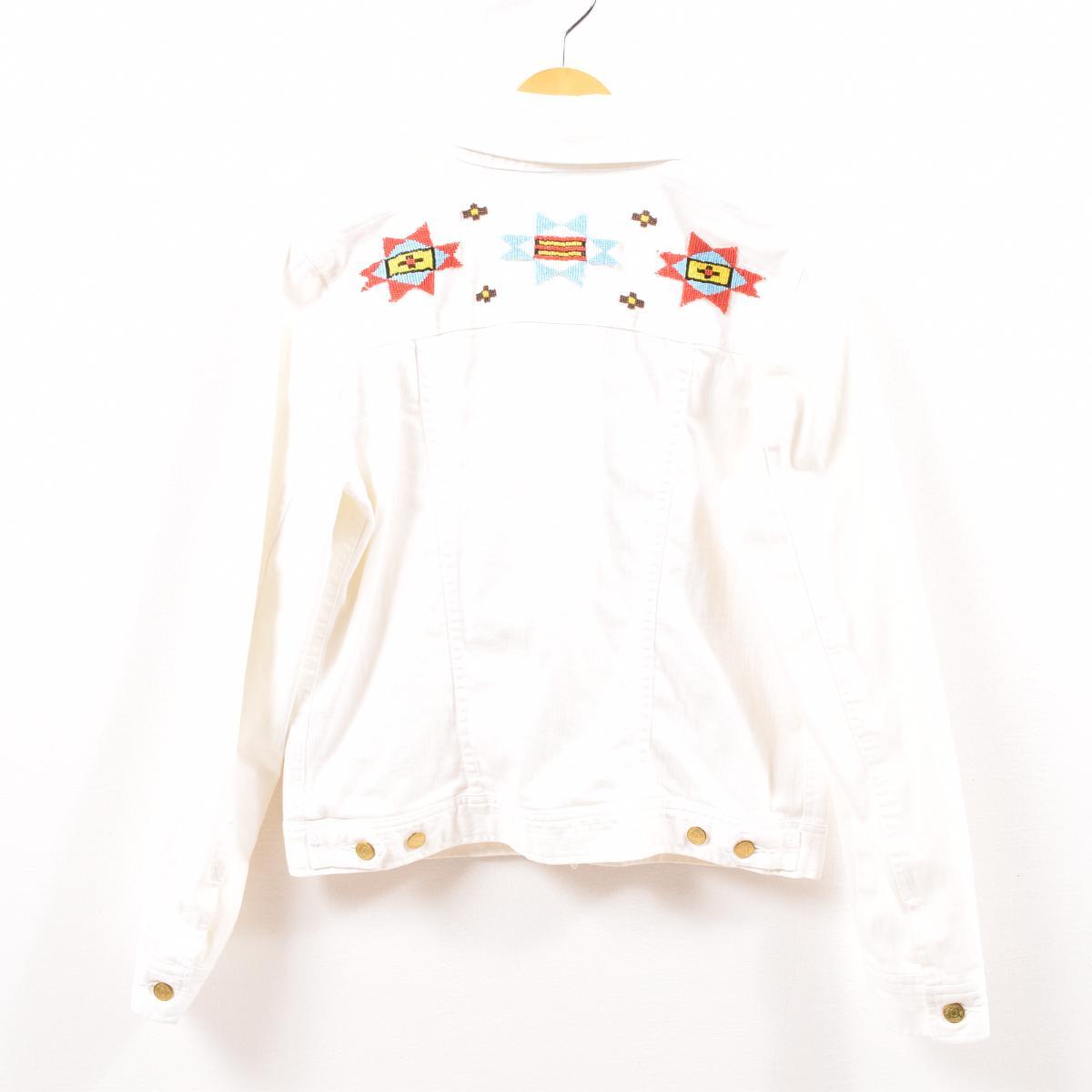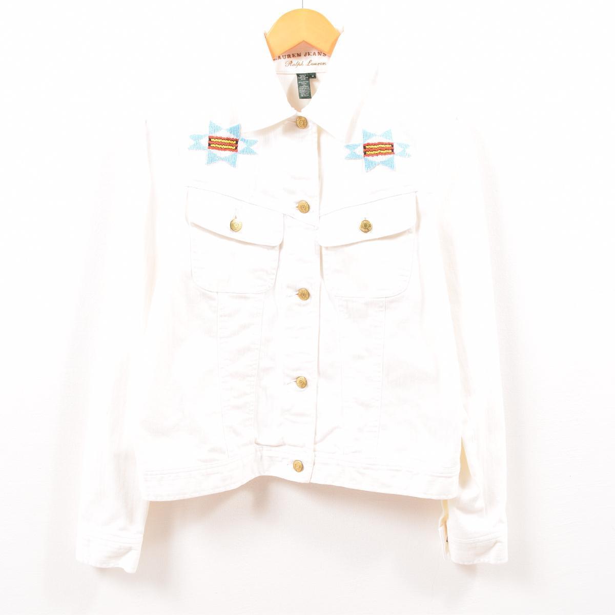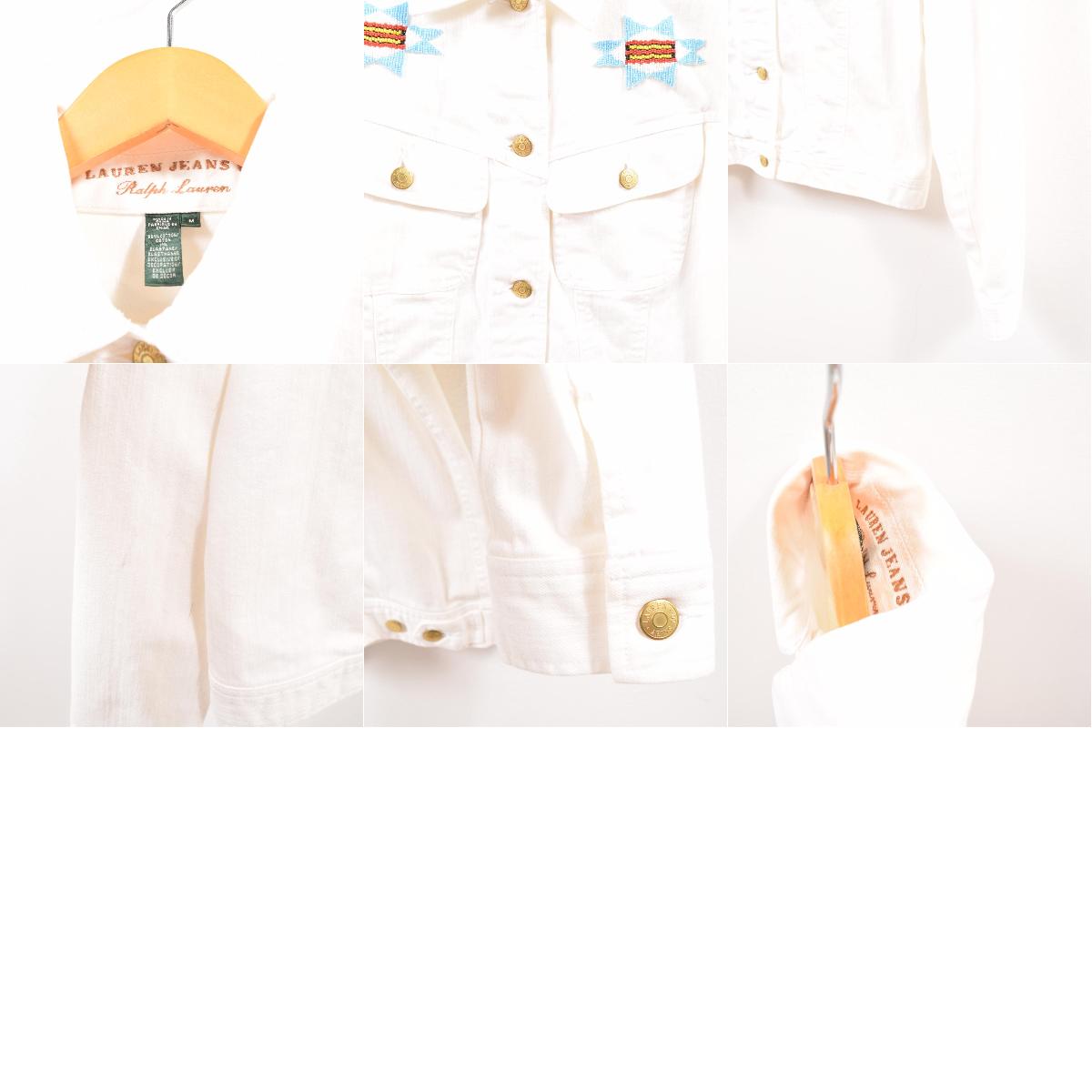 ラルフローレン Ralph Lauren LAUREN JEANS CO ネイティブ柄 ビーズ刺繍 ホワイトデニムジャケット Gジャン レディースM /wbg2103 【中古】 【190726】【ws2001】【CS2001】